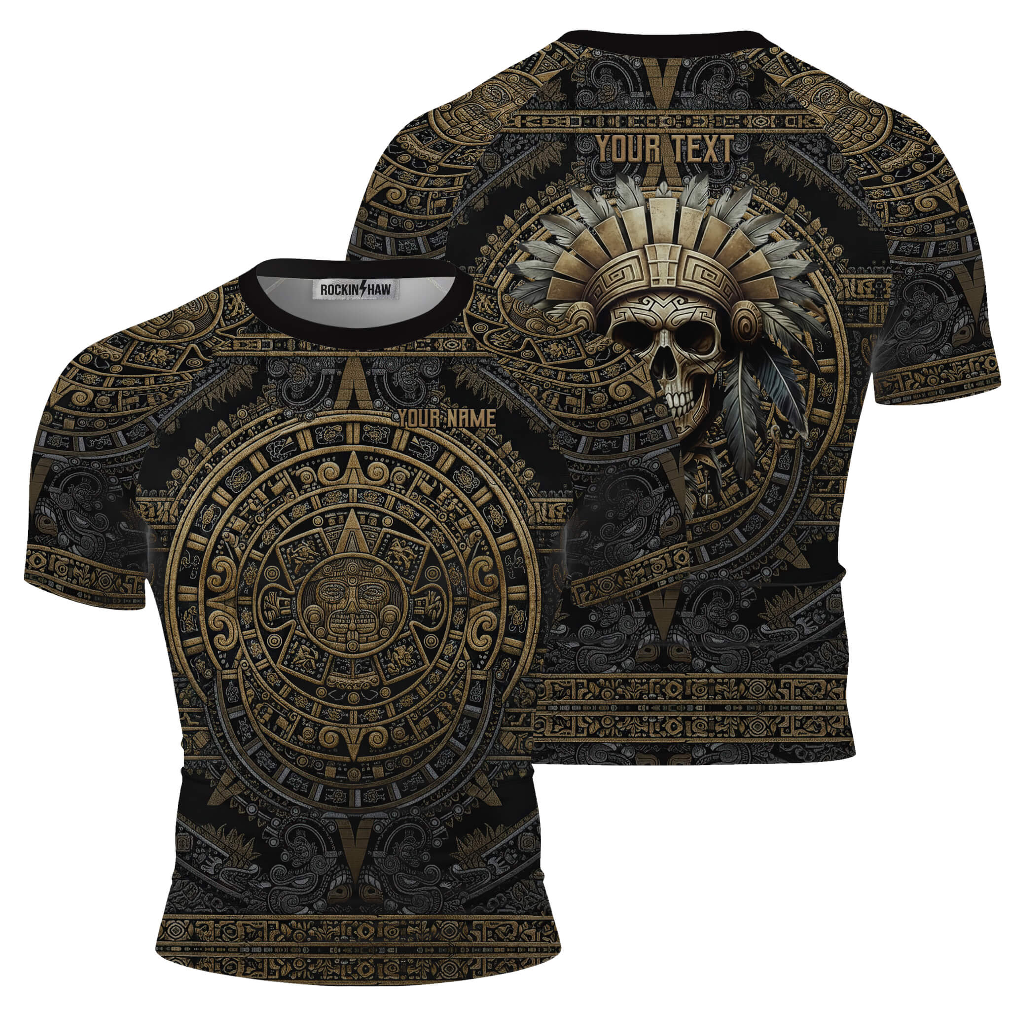 Aztec Tribal Headman Skull Custom BJJ MMA Rash Guard for Men