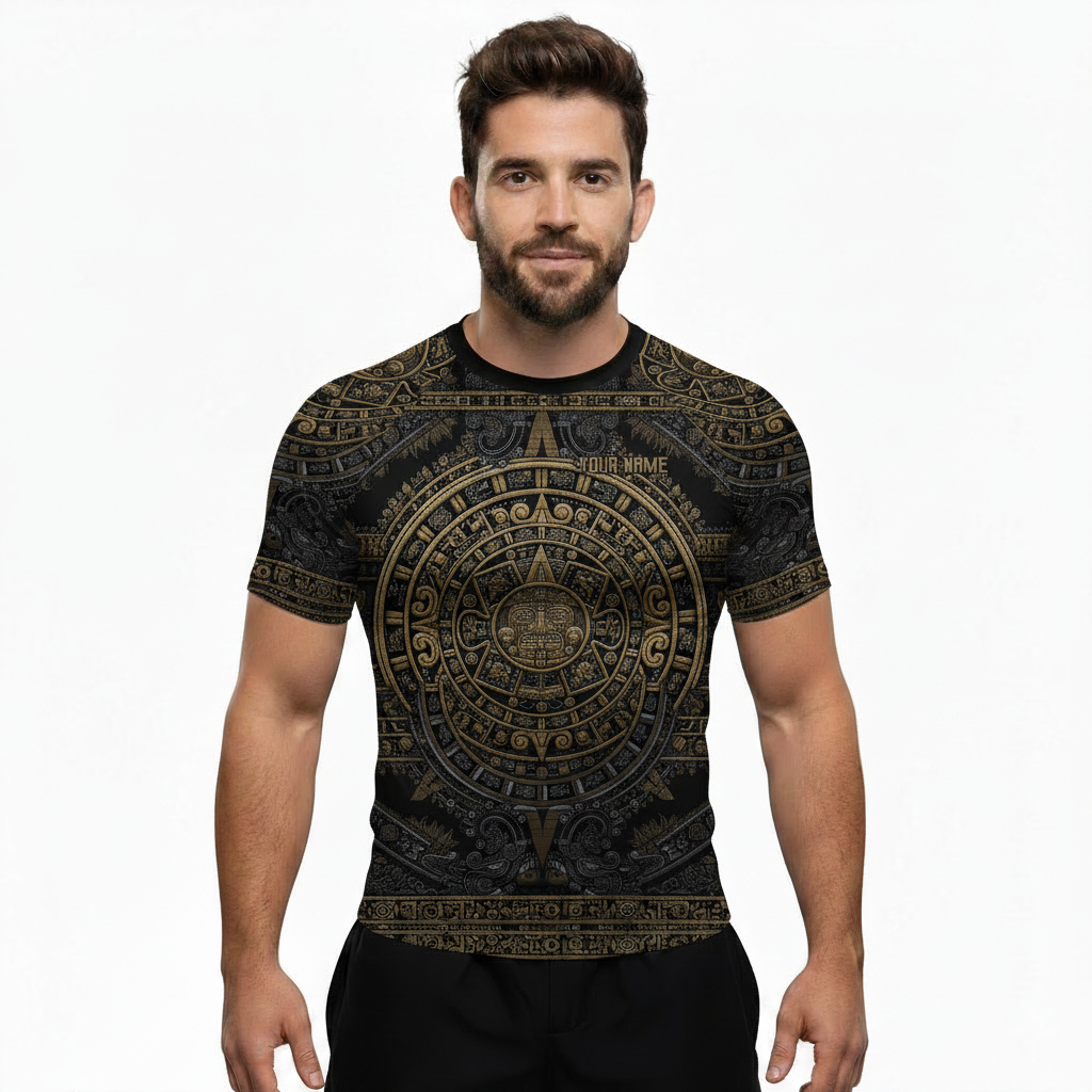 Aztec Tribal Sun Symbol Custom BJJ MMA Rash Guard for Men