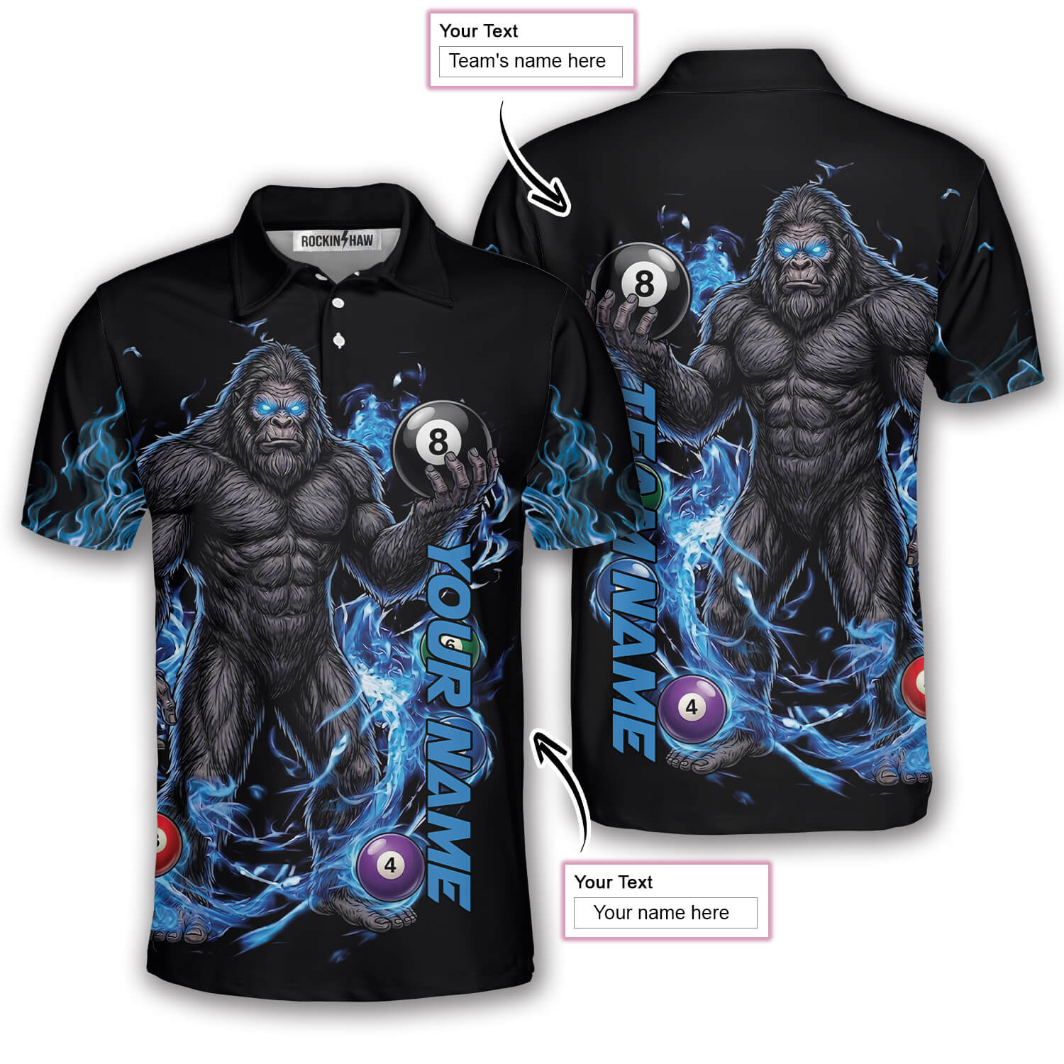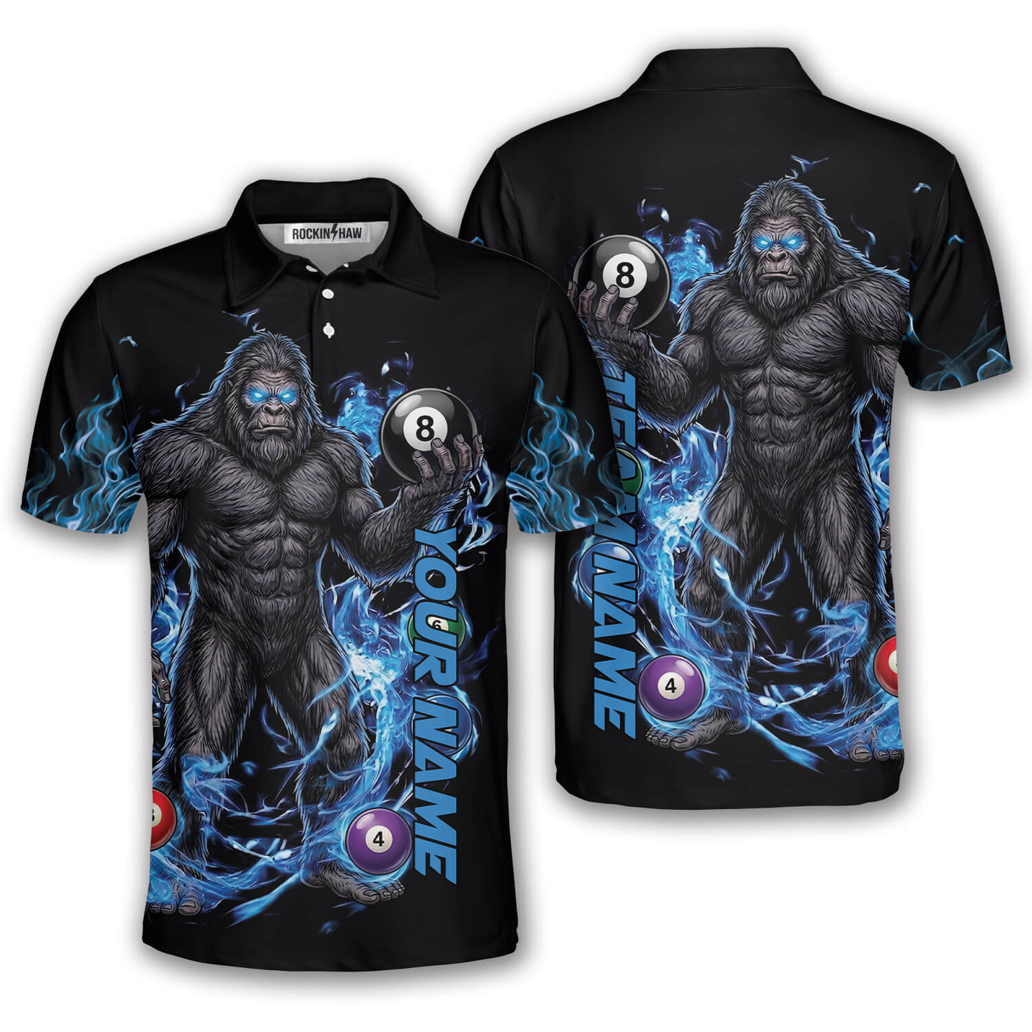 Bigfoot Blue Fire 8 Ball Billiard Sasquatch Custom Pool Shirt
