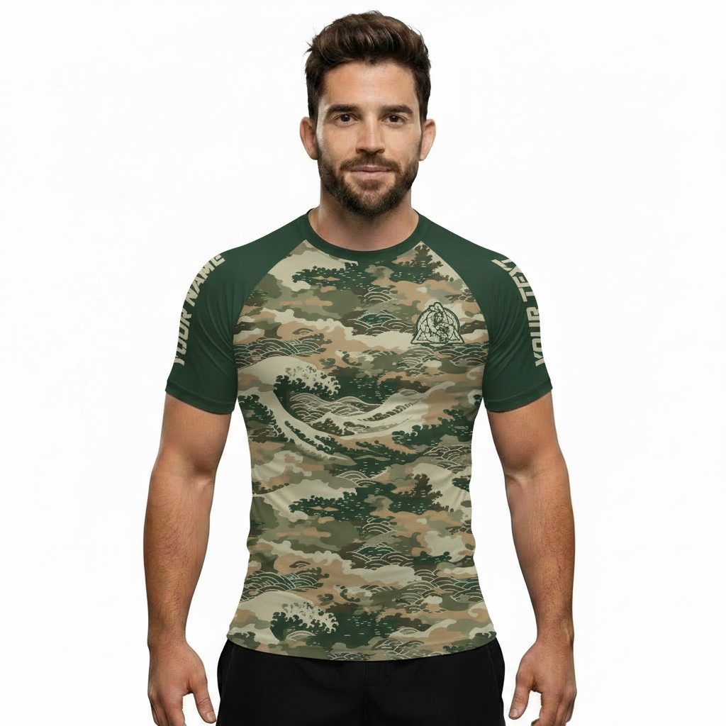 Great Wave Camouflage Camo Pattern Custom BJJ Rash Guard for Men
