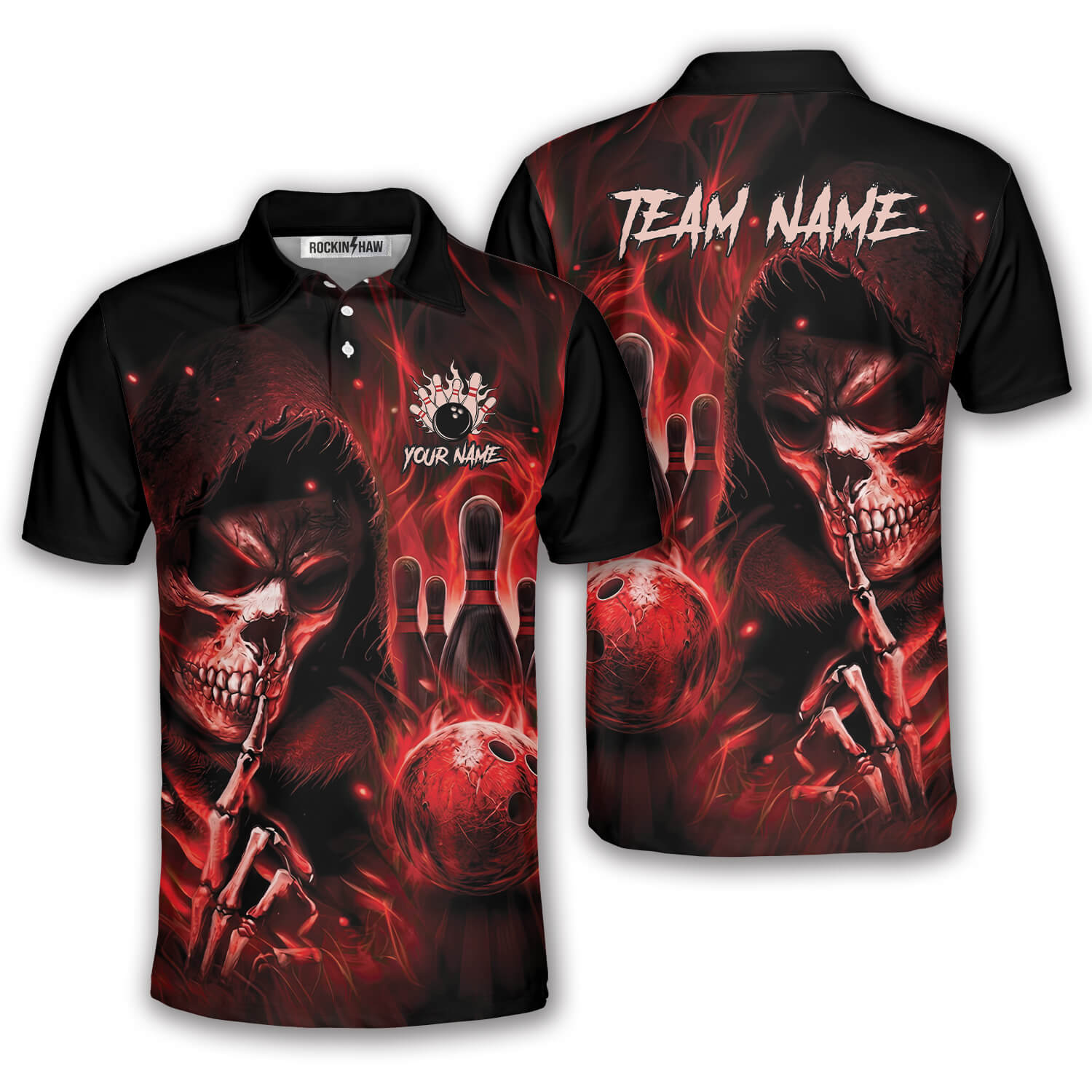 Be the first to review “Grim Reaper Ghostly Red Fire Flame Custom Bowling Shirt”