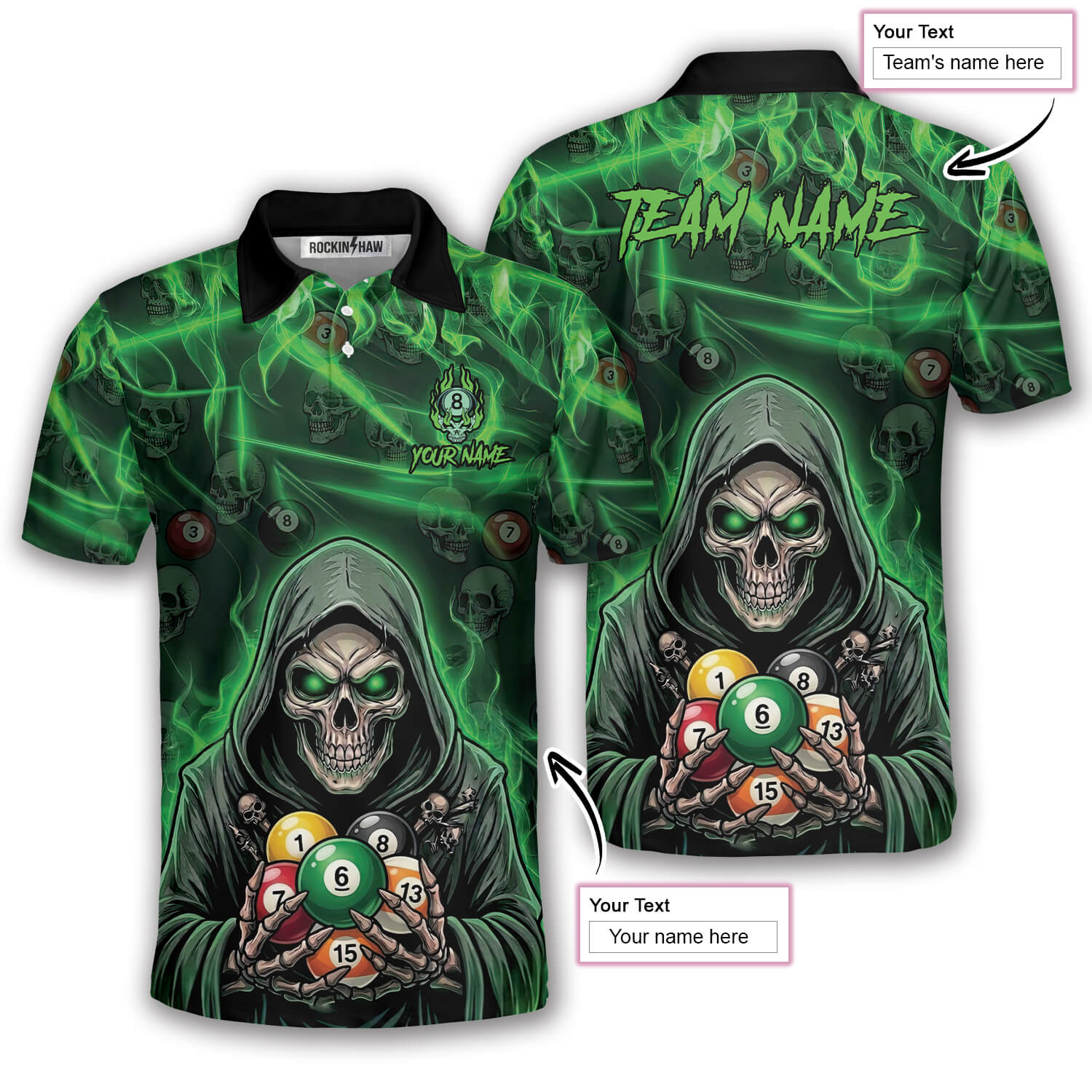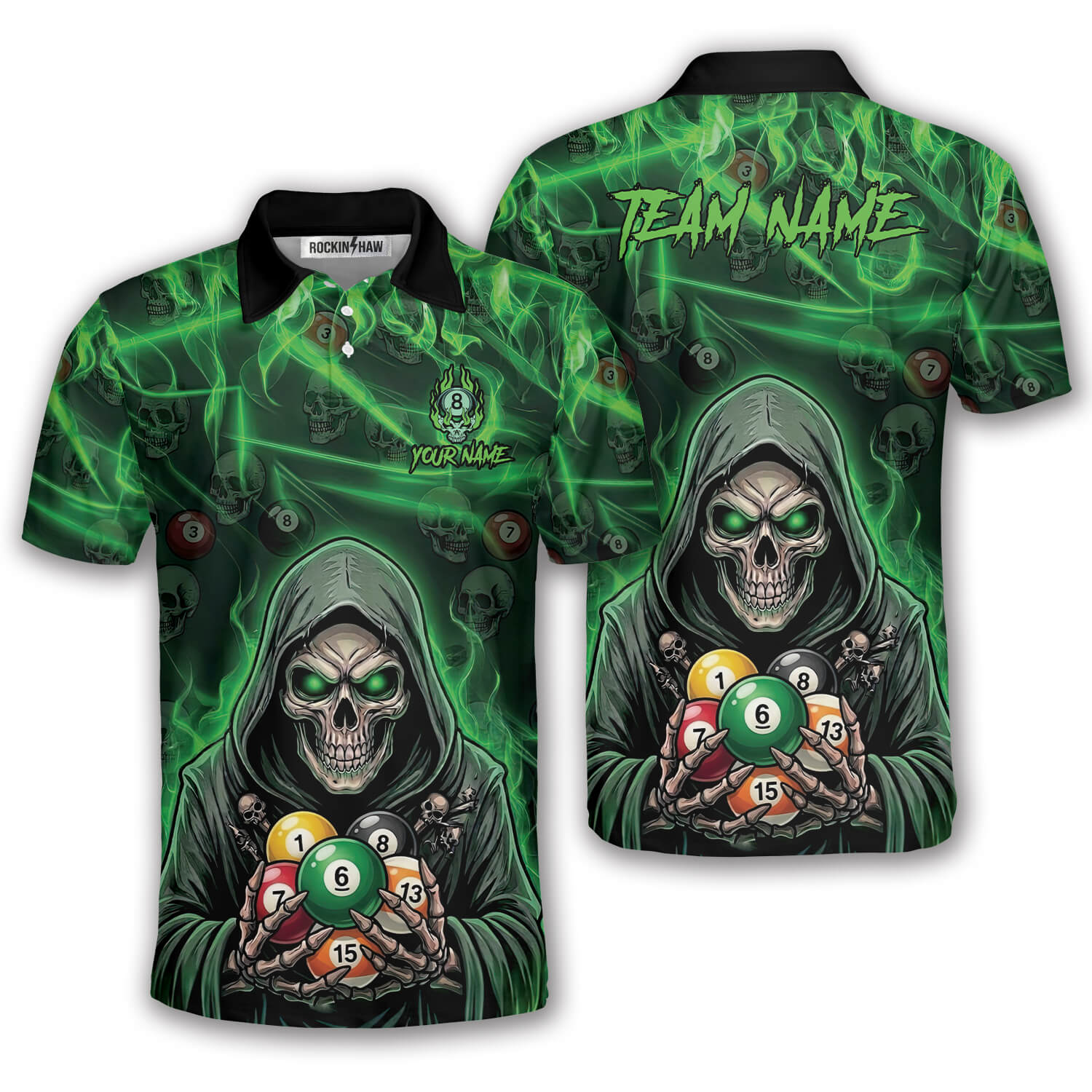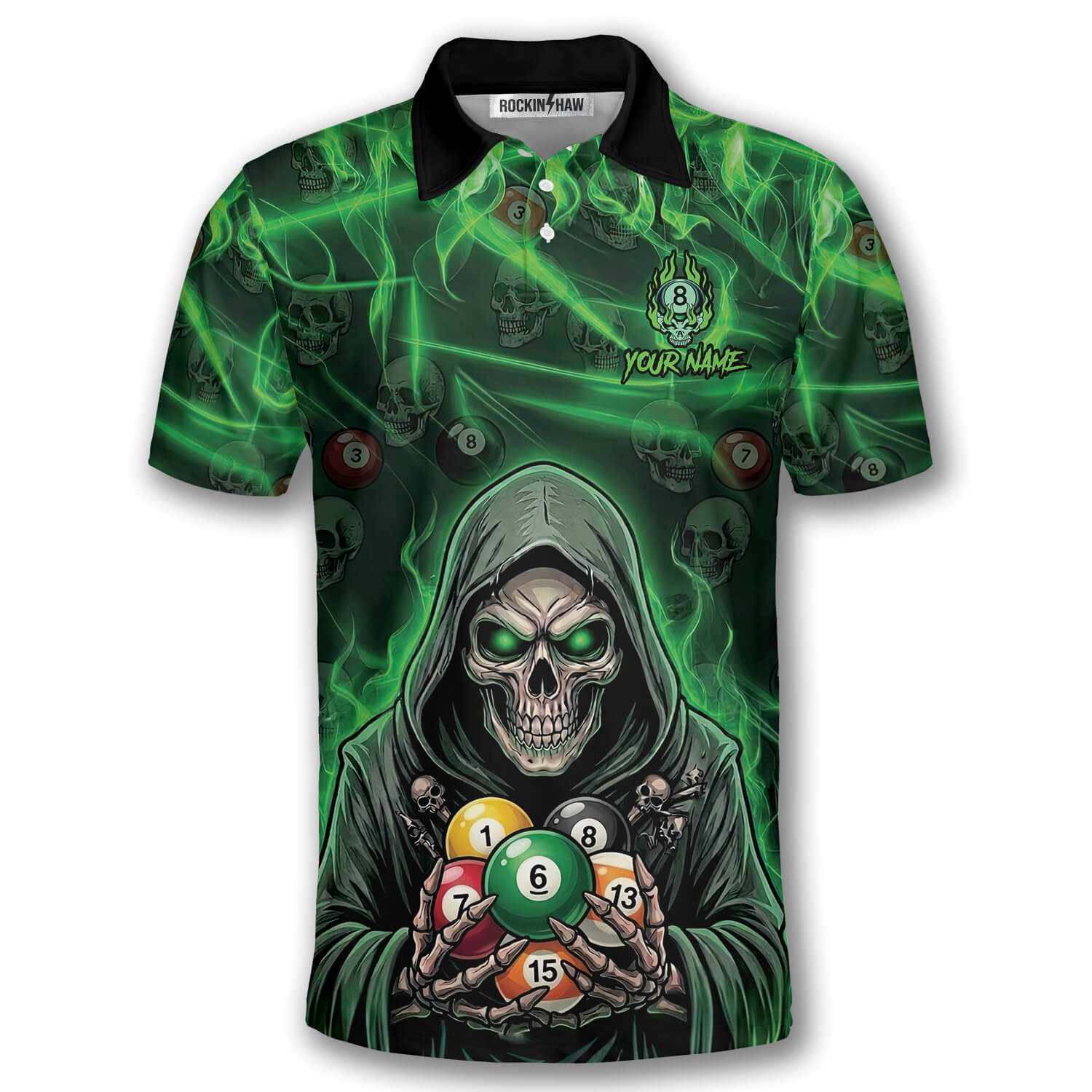Grim Reaper Green Fire Skull Billiard Balls Pattern Custom Pool Shirt