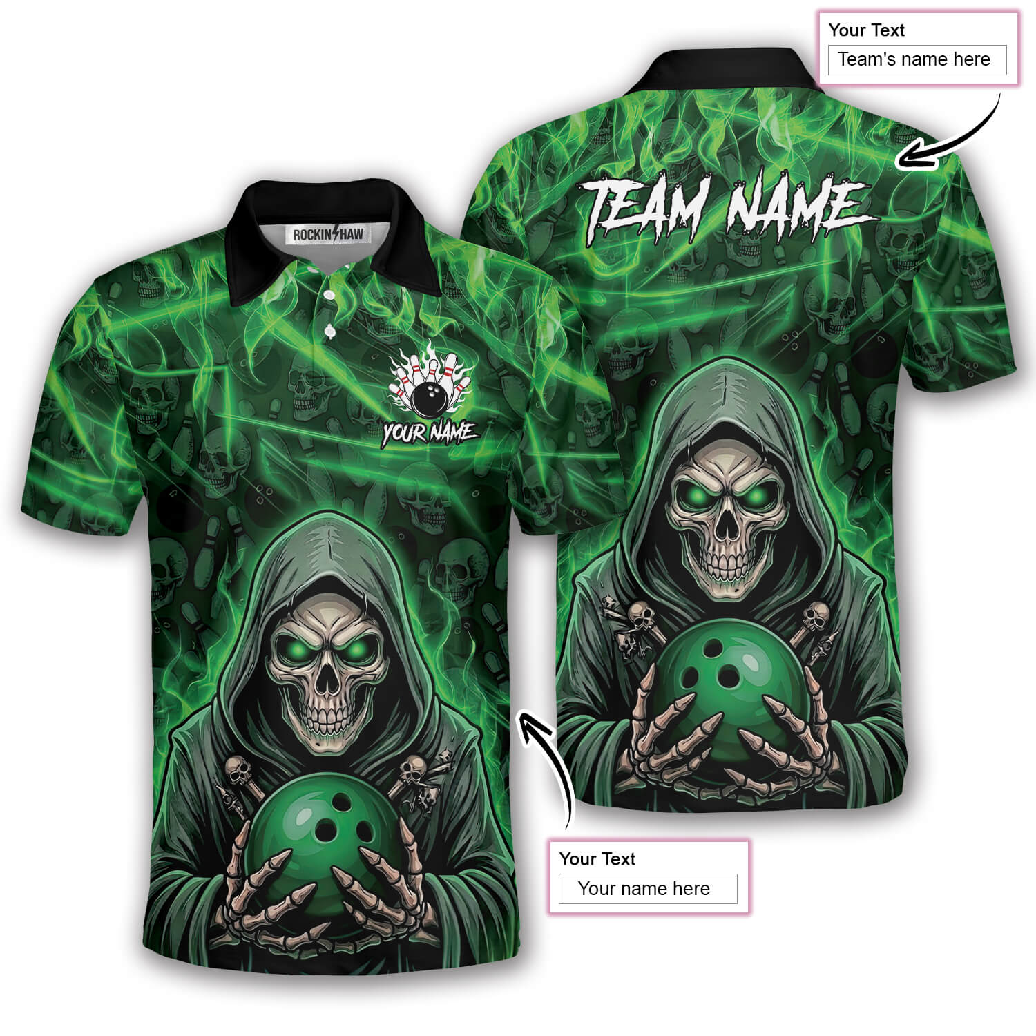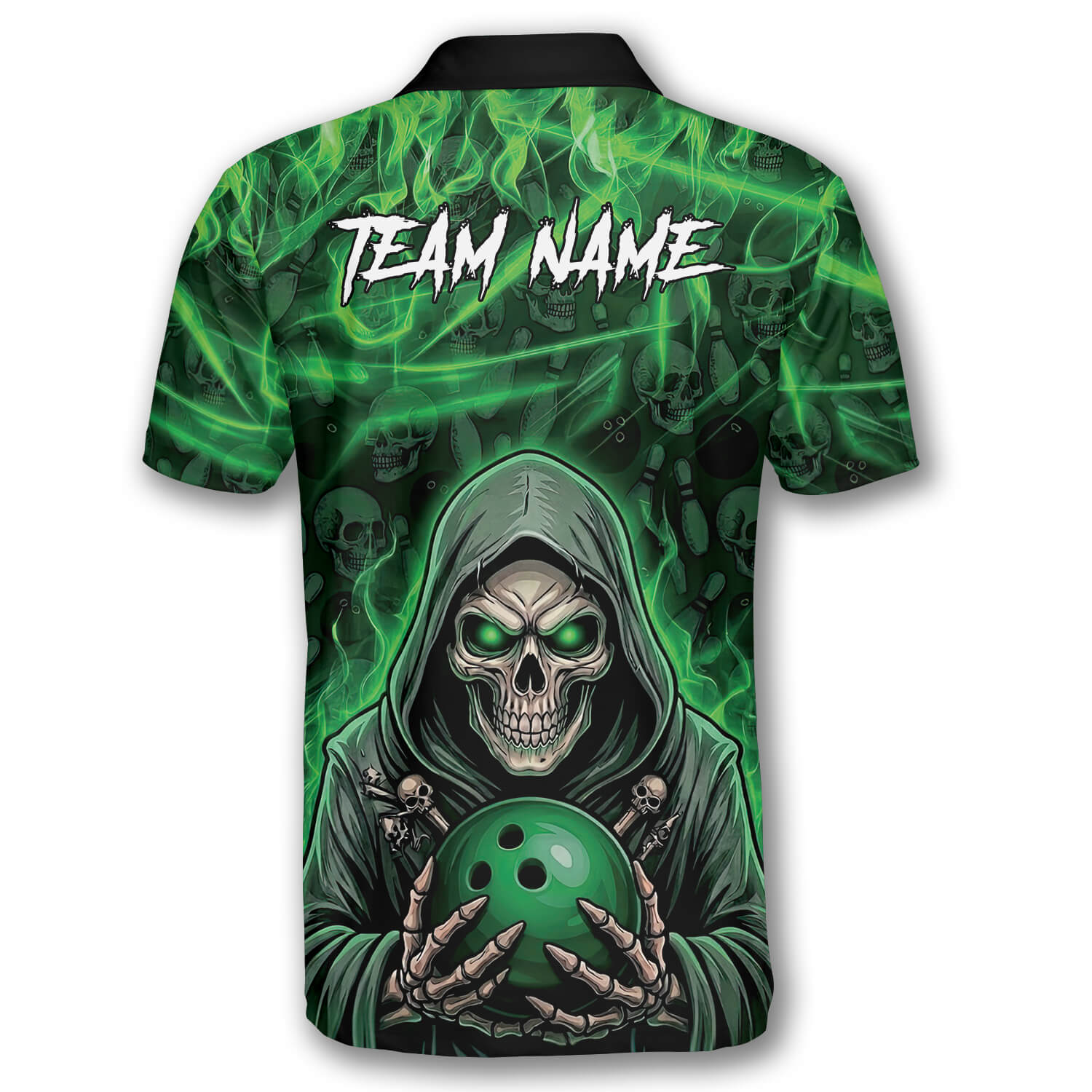 Be the first to review “Grim Reaper Green Fire Skull Bowling Pattern Custom Bowling Shirt”