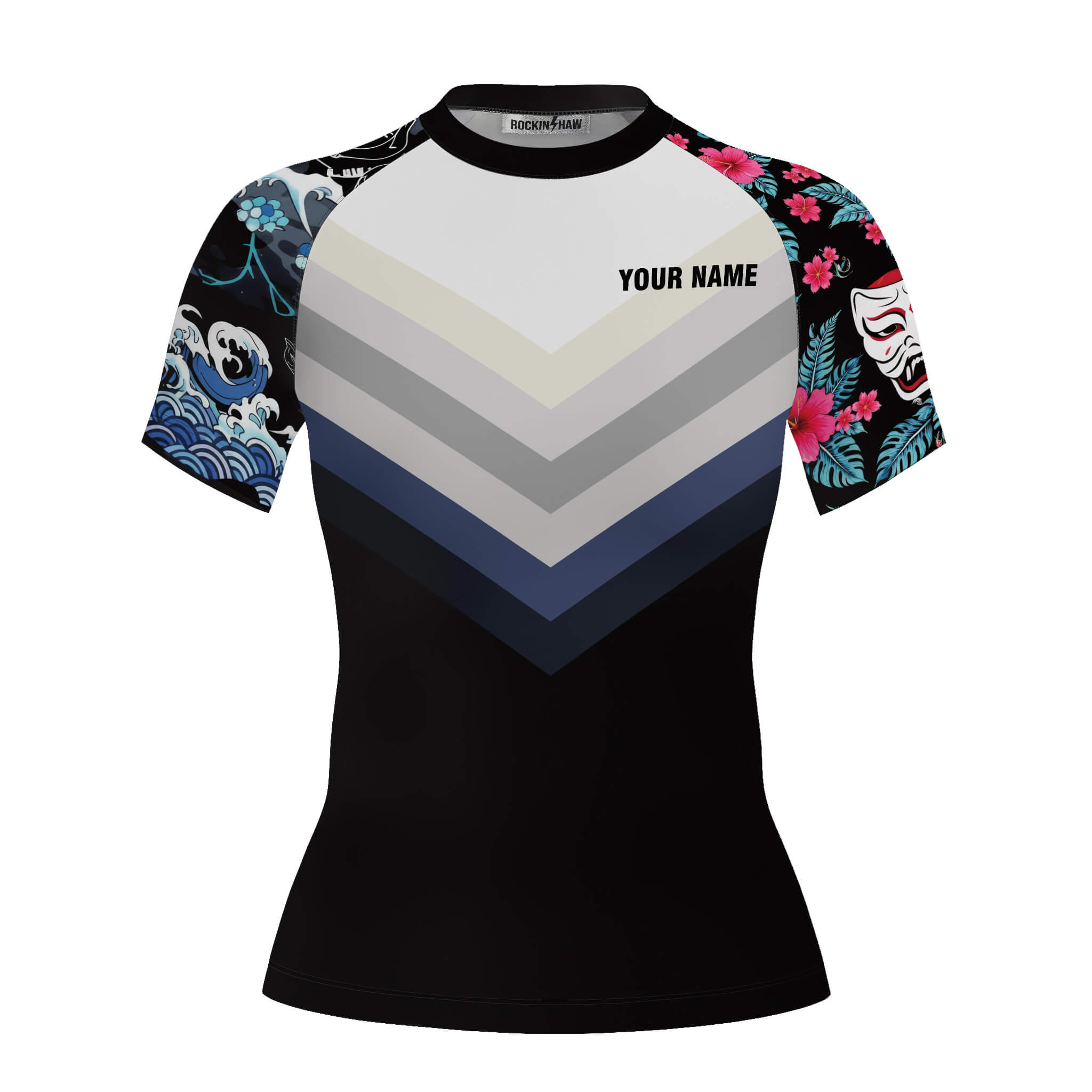 Japanese Wave Cherry Blossom Custom BJJ MMA Rash Guard for Women