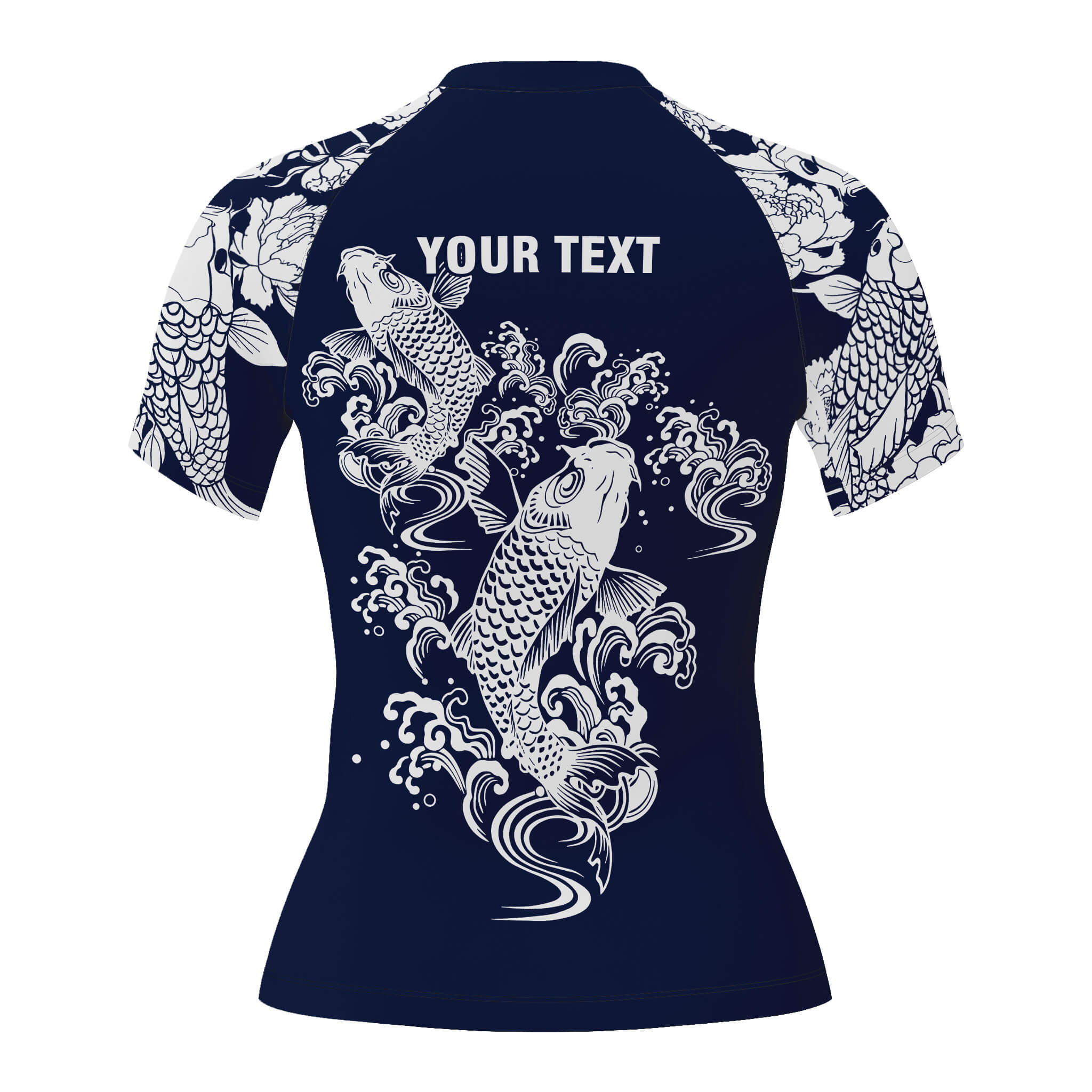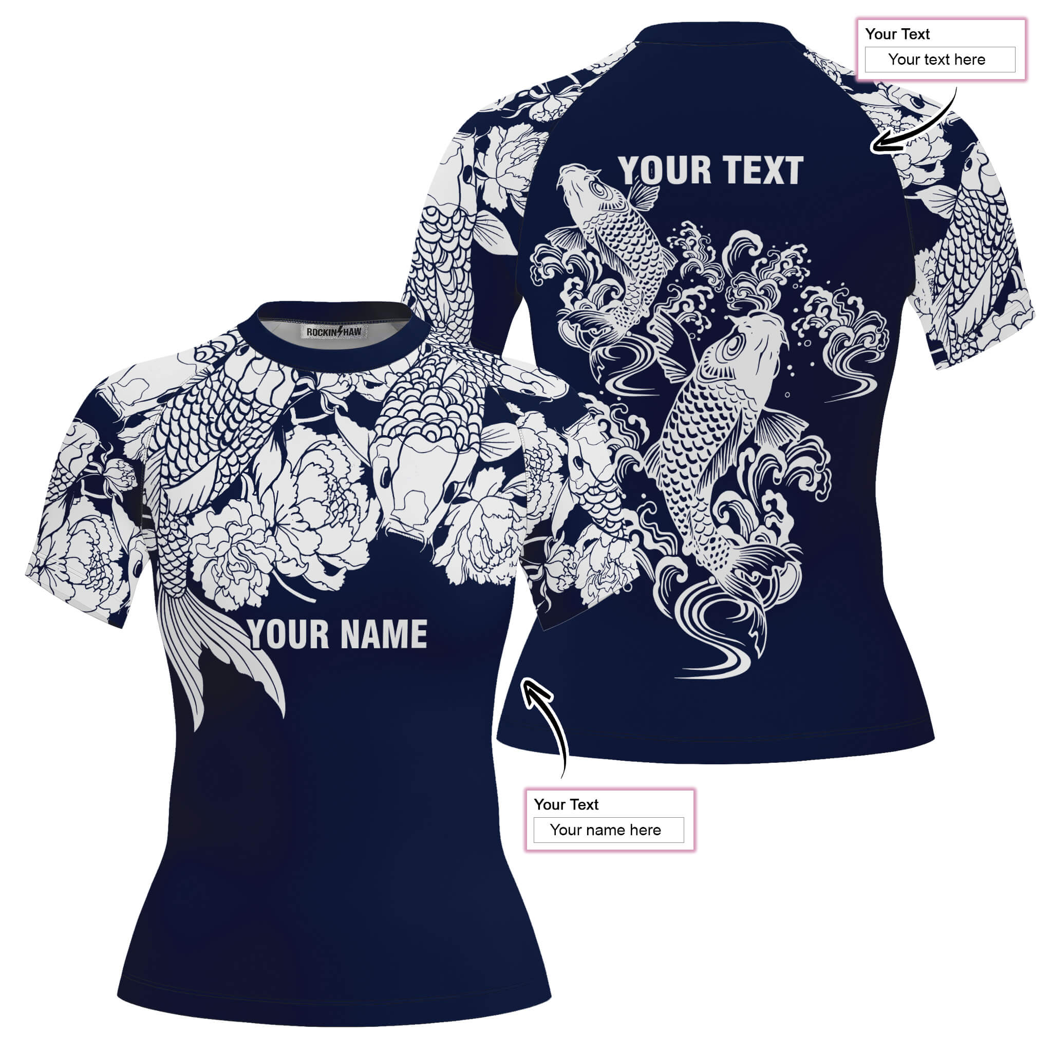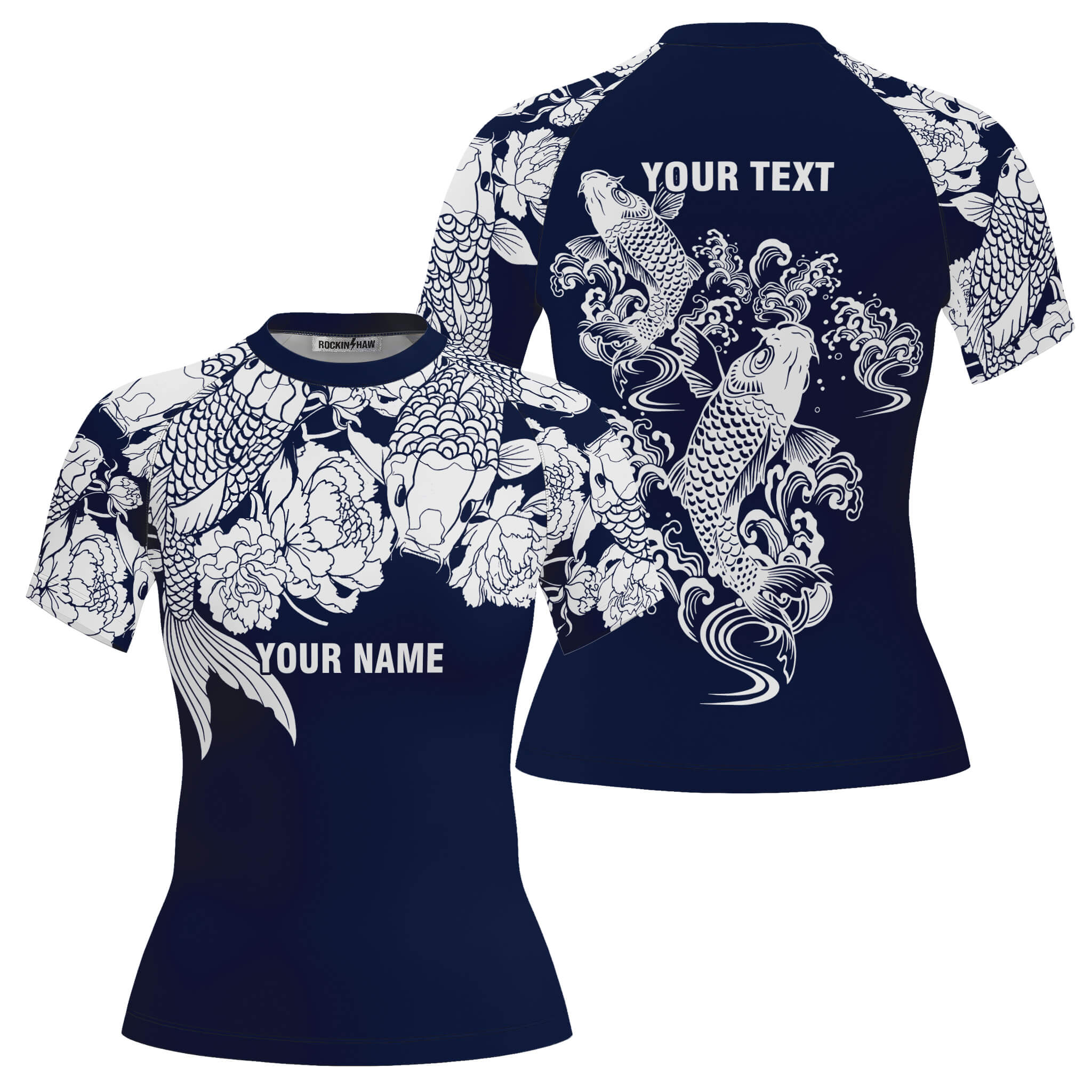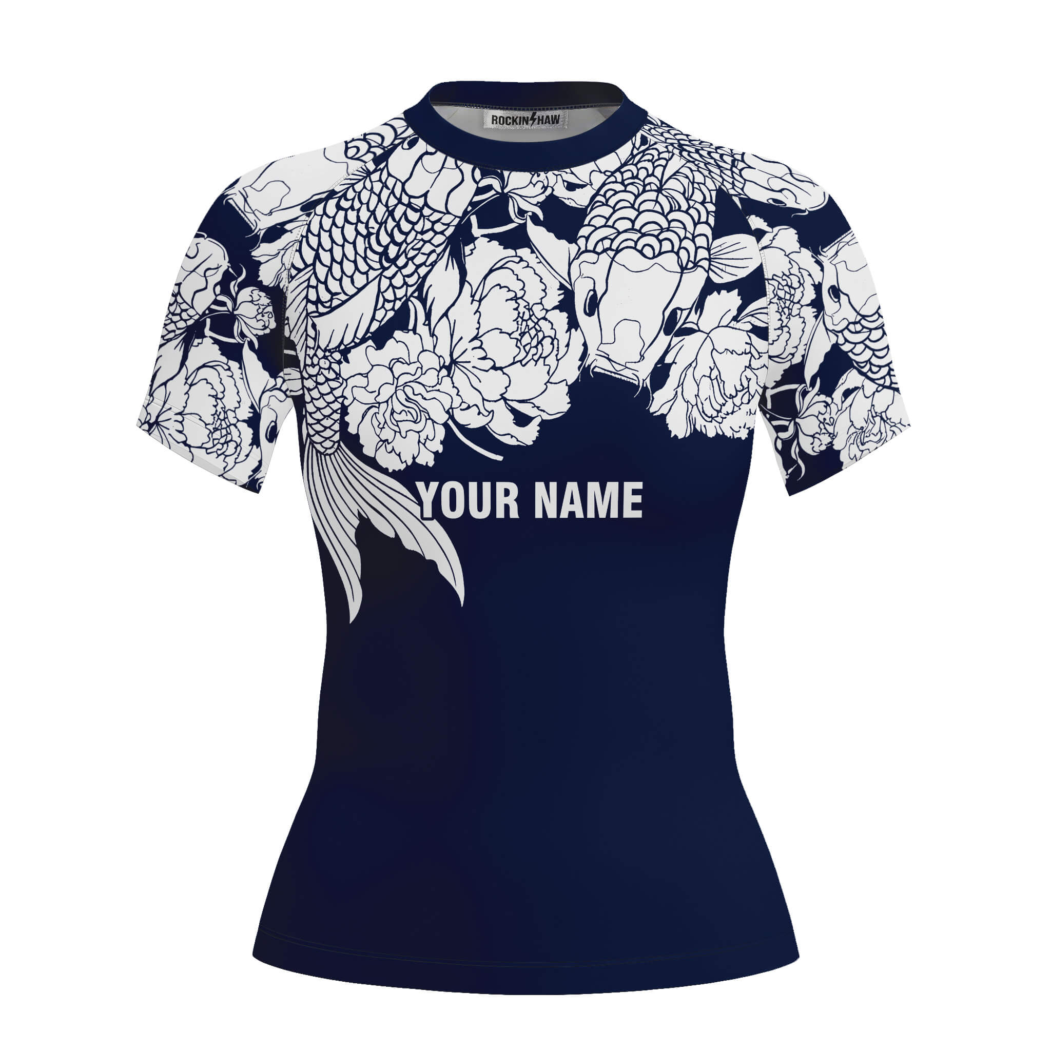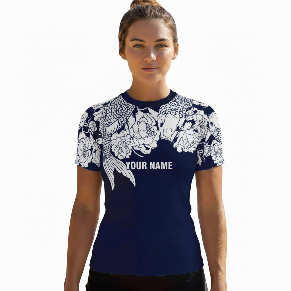 Koi Fish Peony Floral Design Custom BJJ MMA Rash Guard for Women
