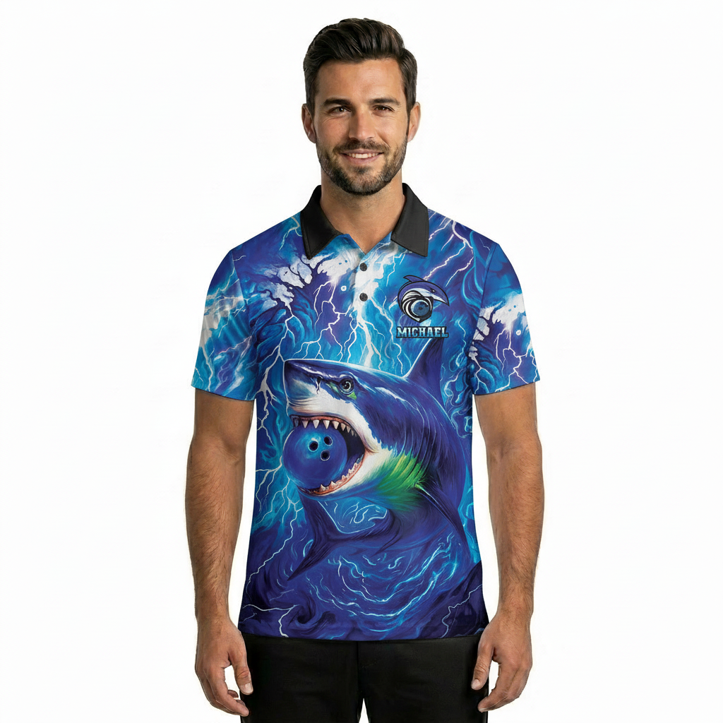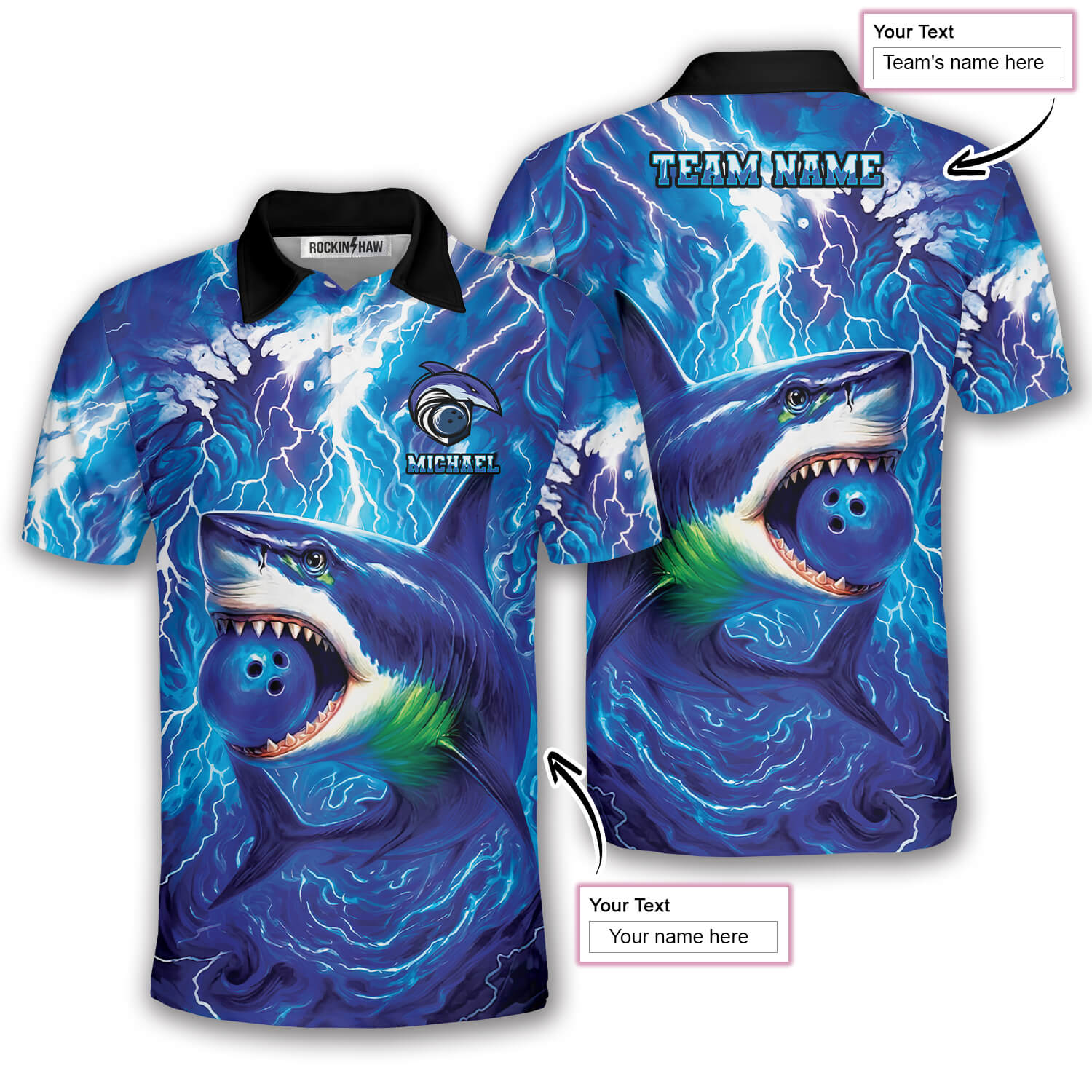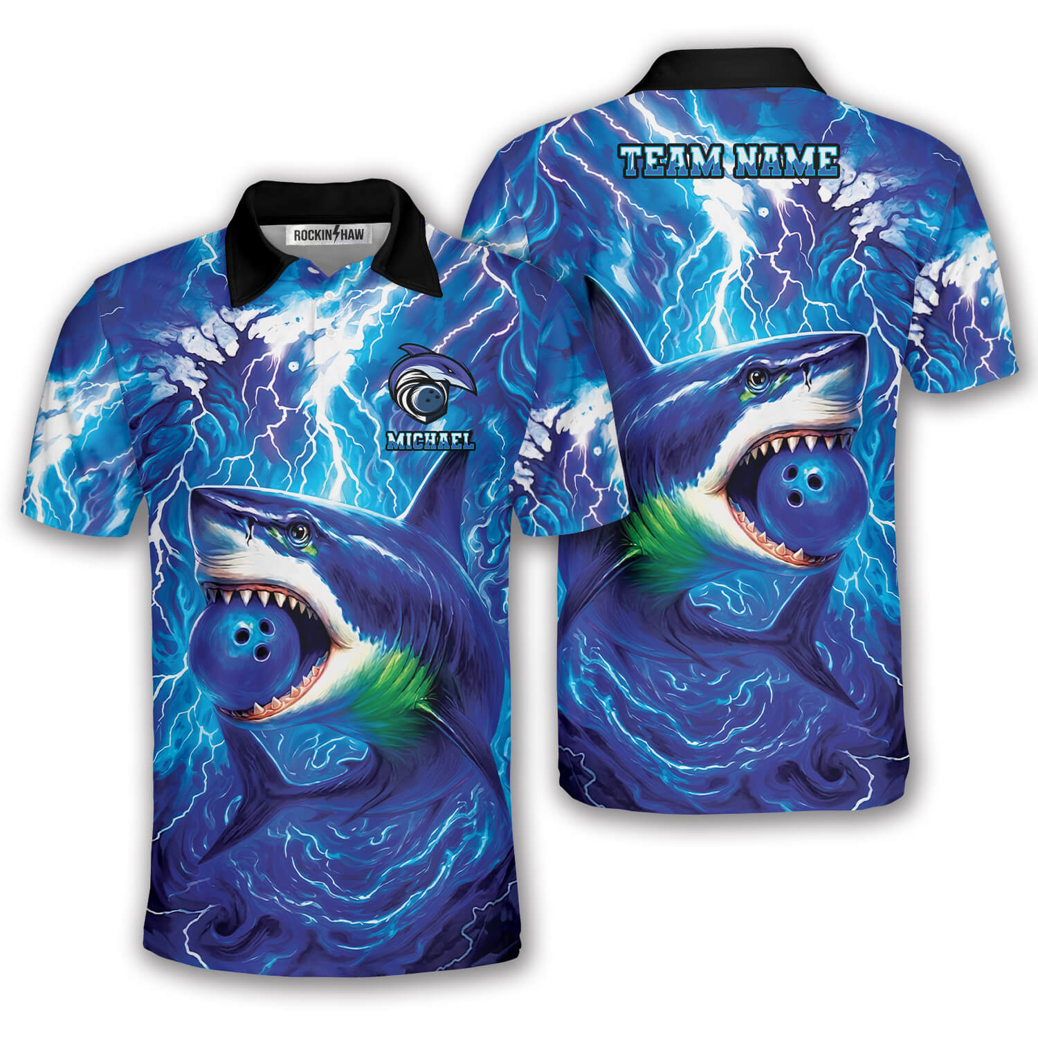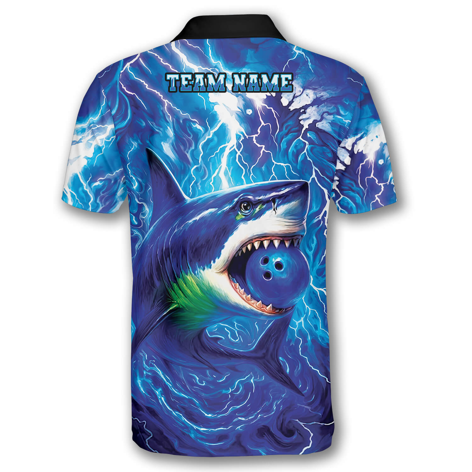 Shark Blue Lightning Storm Custom Bowling Shirt