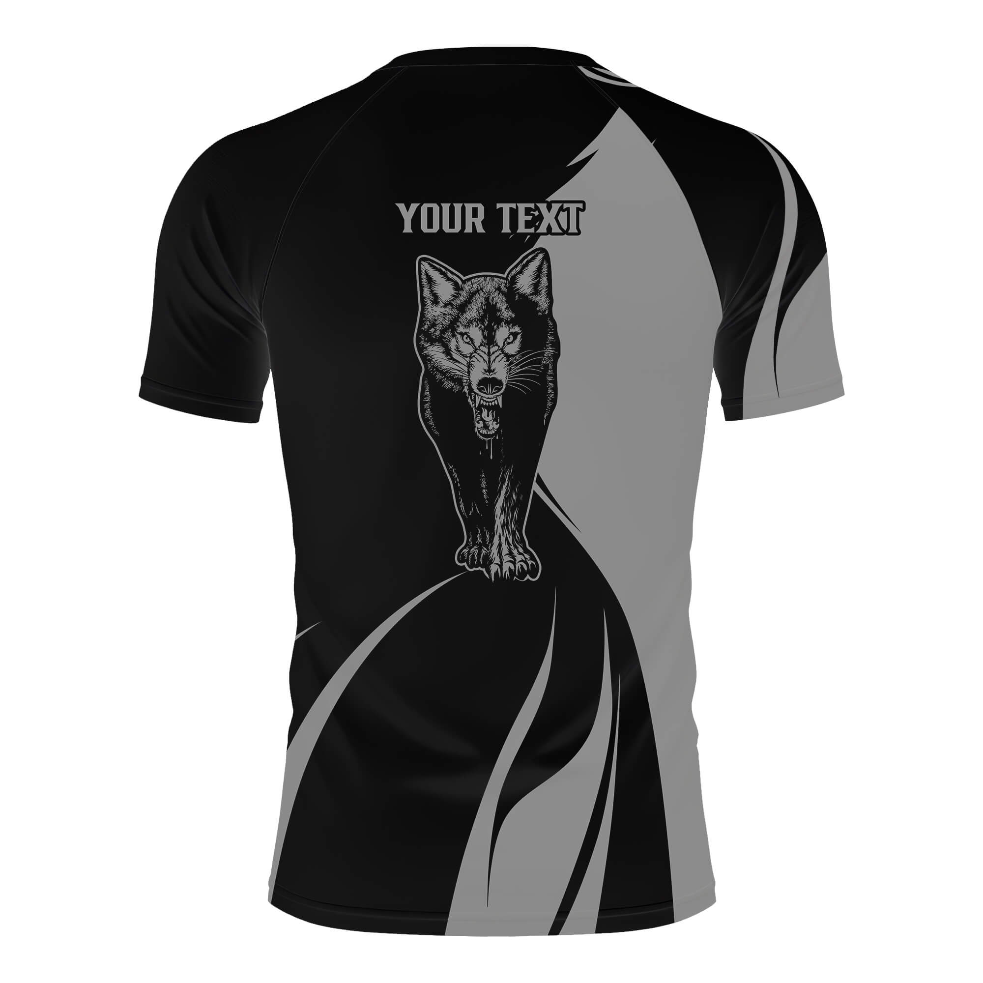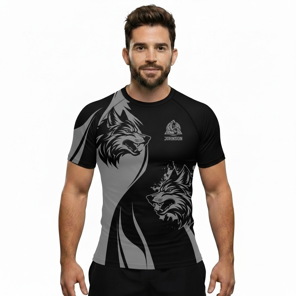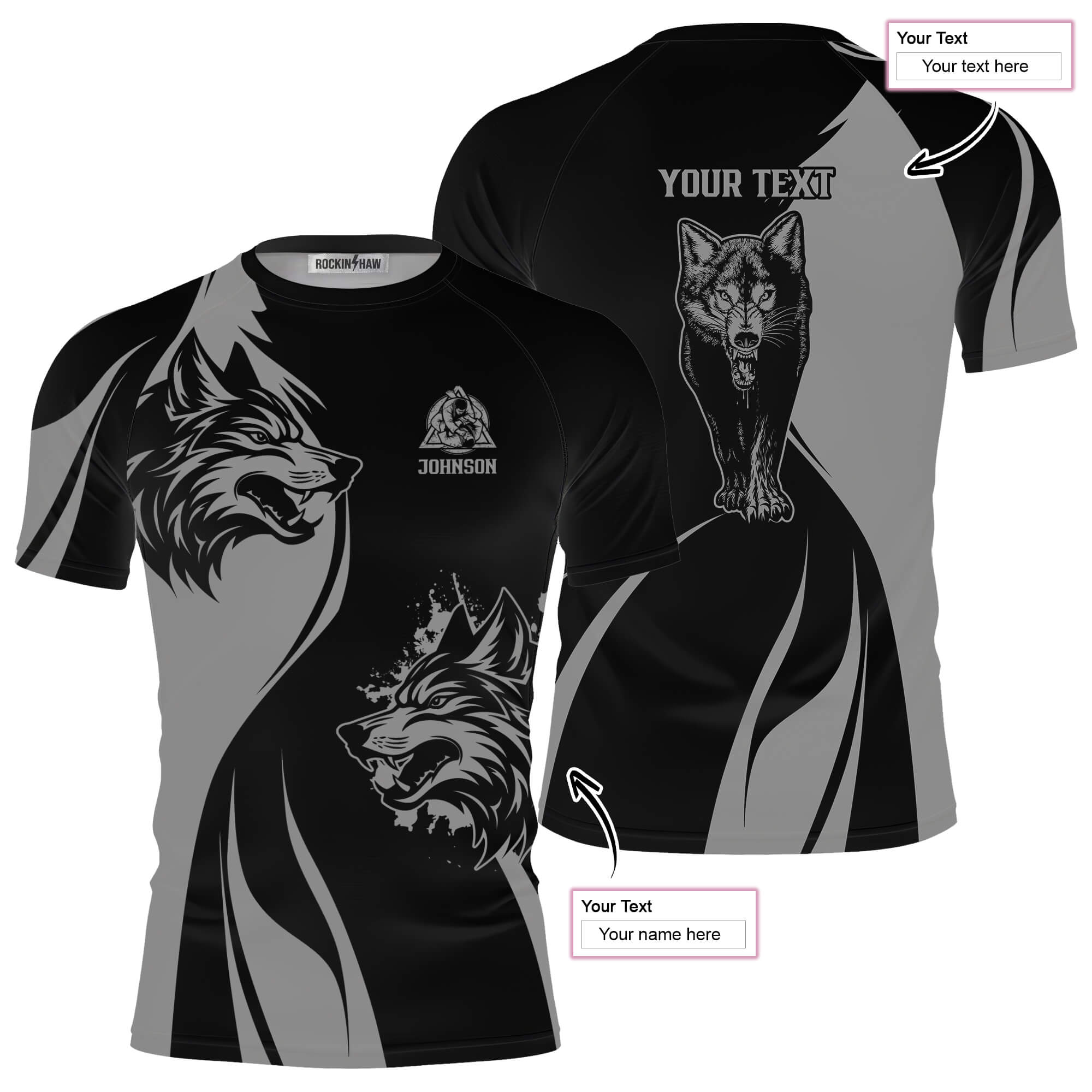 Twin Wolves Black Grey Custom BJJ Rash Guard for Men