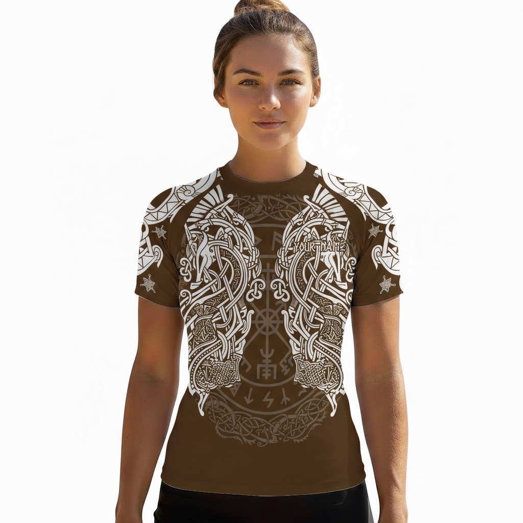 Viking Norse Mjolnirs Might Brown Belt Custom BJJ Rash Guard for Women