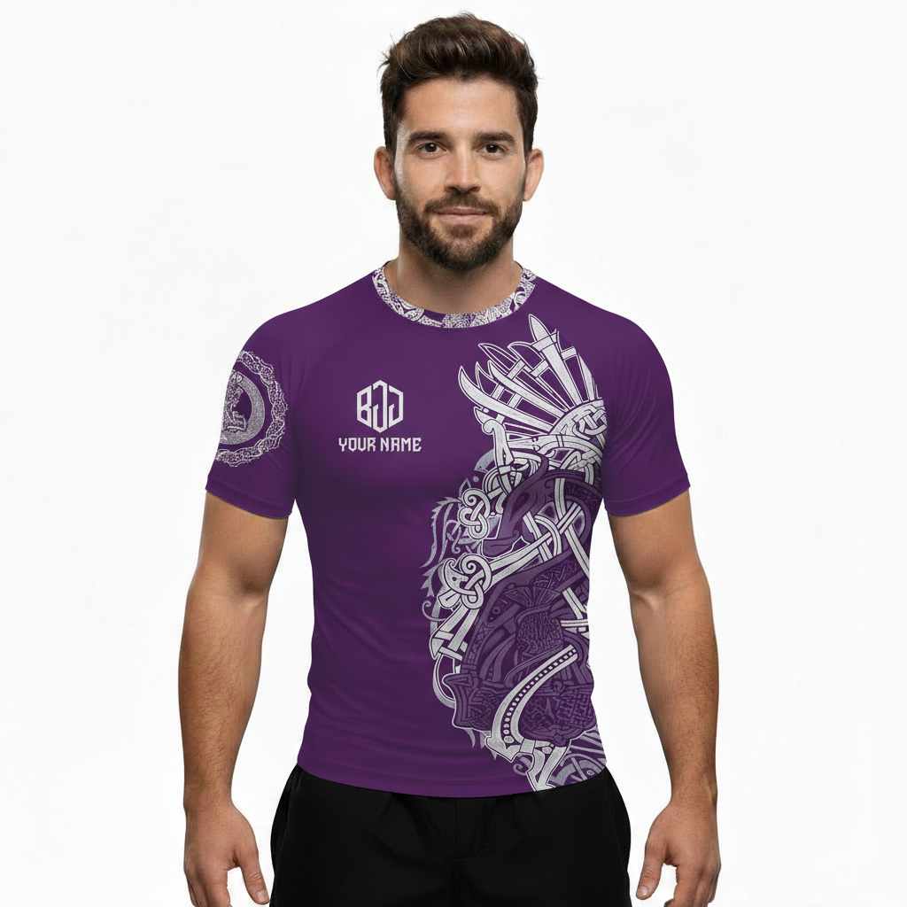 Viking Norse Mjolnirs Might Purple Belt Custom BJJ Rash Guard for Men