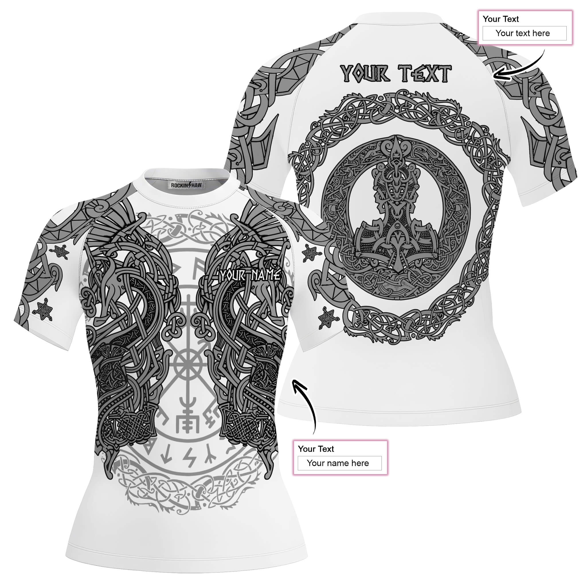 Be the first to review “Viking Norse Mjolnirs Might White Belt Custom BJJ Rash Guard for Women”