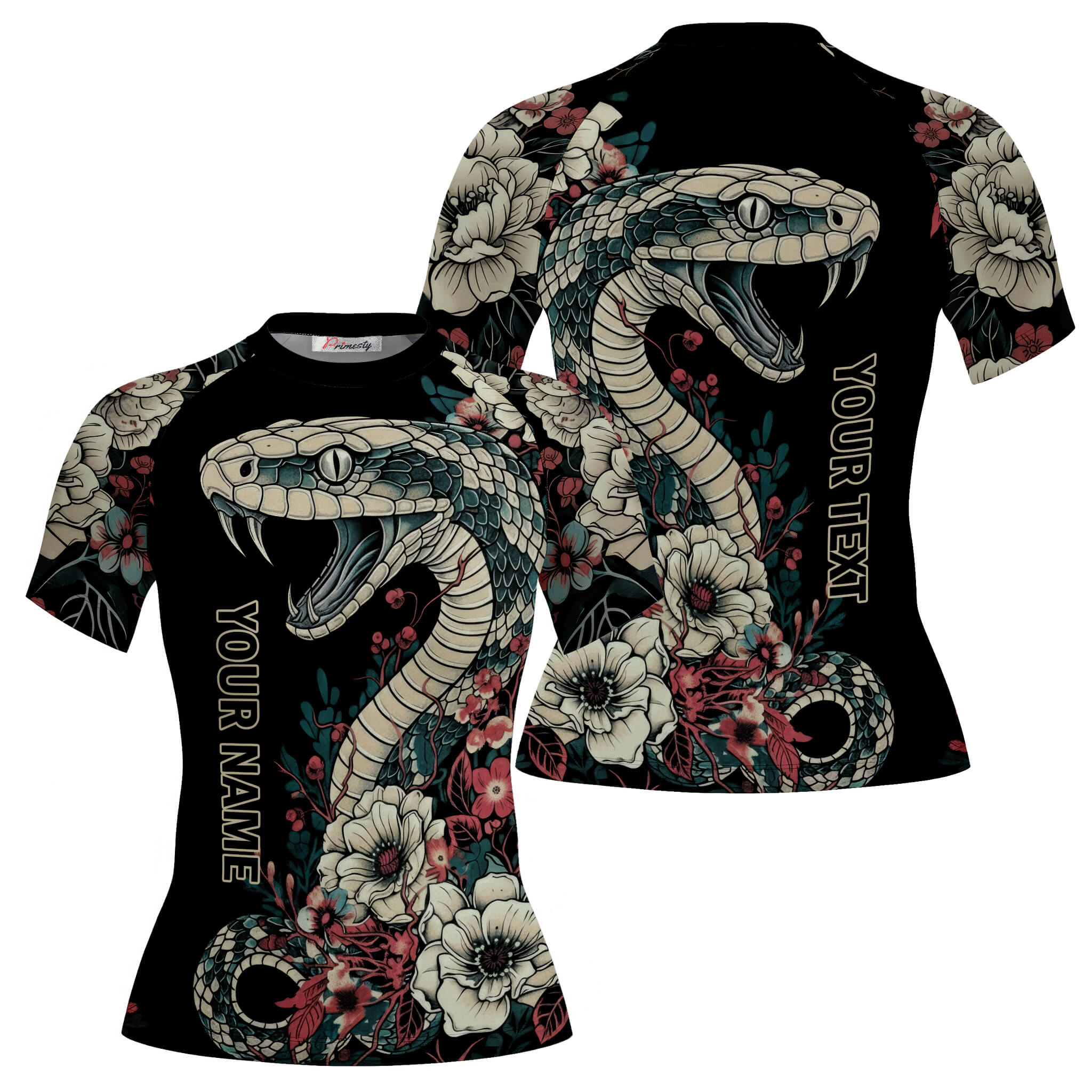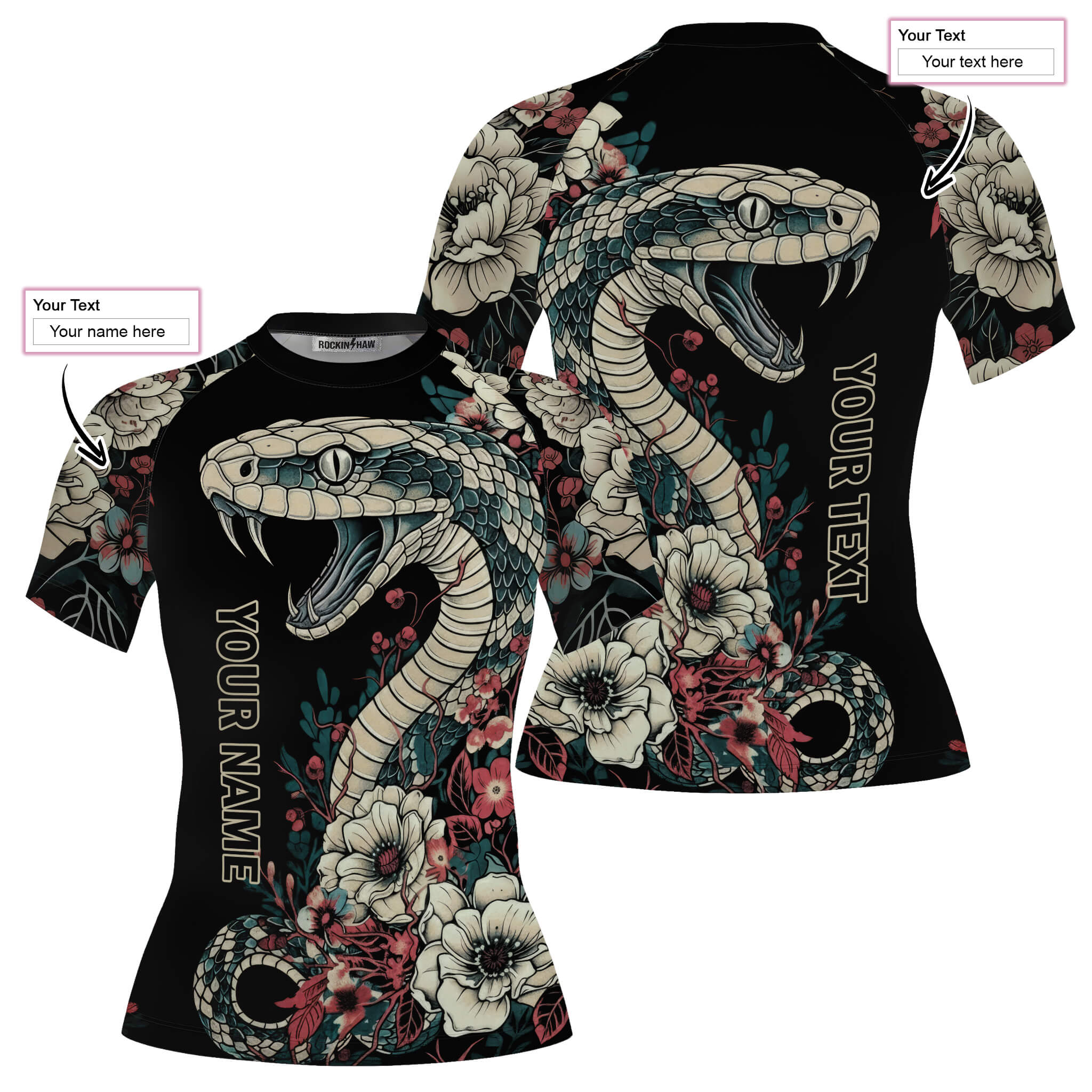Be the first to review “Vintage Snake Floral Design Custom BJJ MMA Rash Guard for Women”