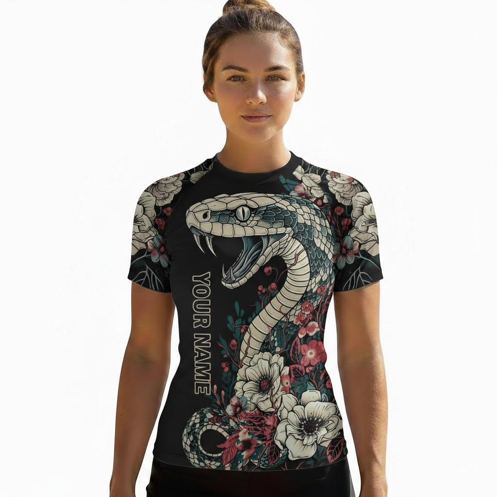 Vintage Snake Floral Design Custom BJJ MMA Rash Guard for Women