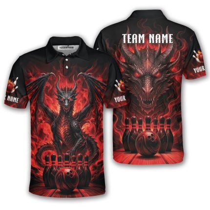 Red Black Dragon Bowling Fire Flame Custom Bowling Shirt