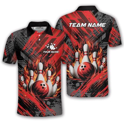 Red Fire Bowling Strike Abstract Grunge Custom Bowling Shirt