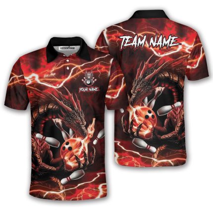 Red Fire Dragon Flaming Bowling Ball Lightning Art Custom Bowling Shirt