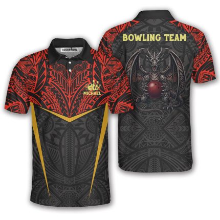 Red Tribal Dragon Polynesian Tattoo Style Custom Bowling Shirt