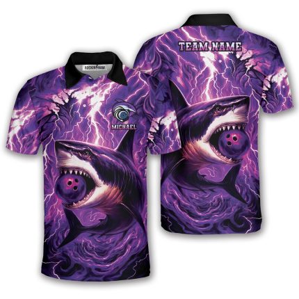Shark Purple Lightning Storm Custom Bowling Shirt