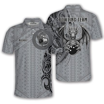 Tribal Dragon Monochrome Custom Bowling Shirt